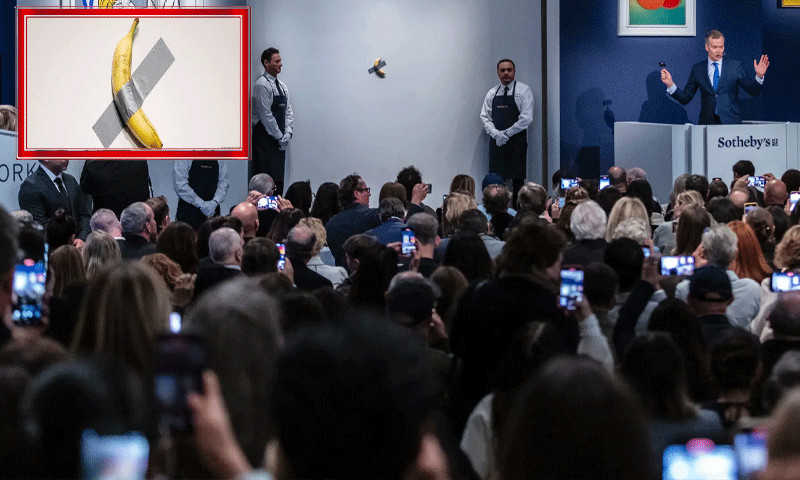 The famous New York art company Sotheby’s has sold a controversial piece of art by Italian artist Maurizio Cattelan (a banana stuck to a wall with duct tape) at an auction for $62 million.